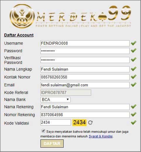 Daftar ID Pro di Situs PKV Games Terpercaya Indonesia, Merdeka99 sangatlah mudah dan praktis. Anda hanya perlu mempersiapkan Alamat Email & Data Rekening yang valid.
